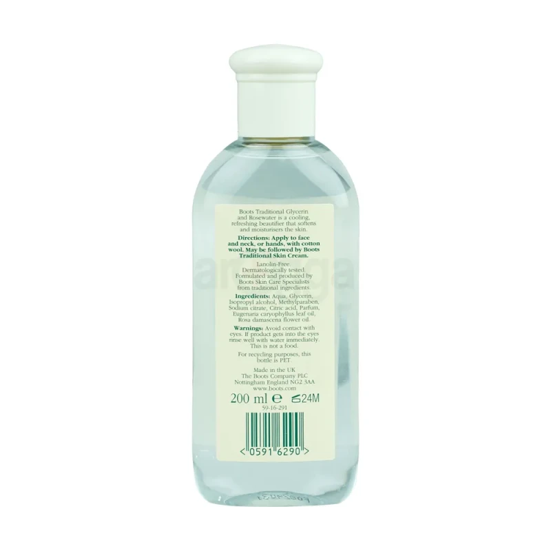 oots Traditional Glycerin and Rosewater is a cooling, refreshing beautifier that softens and moisturisers the skin.