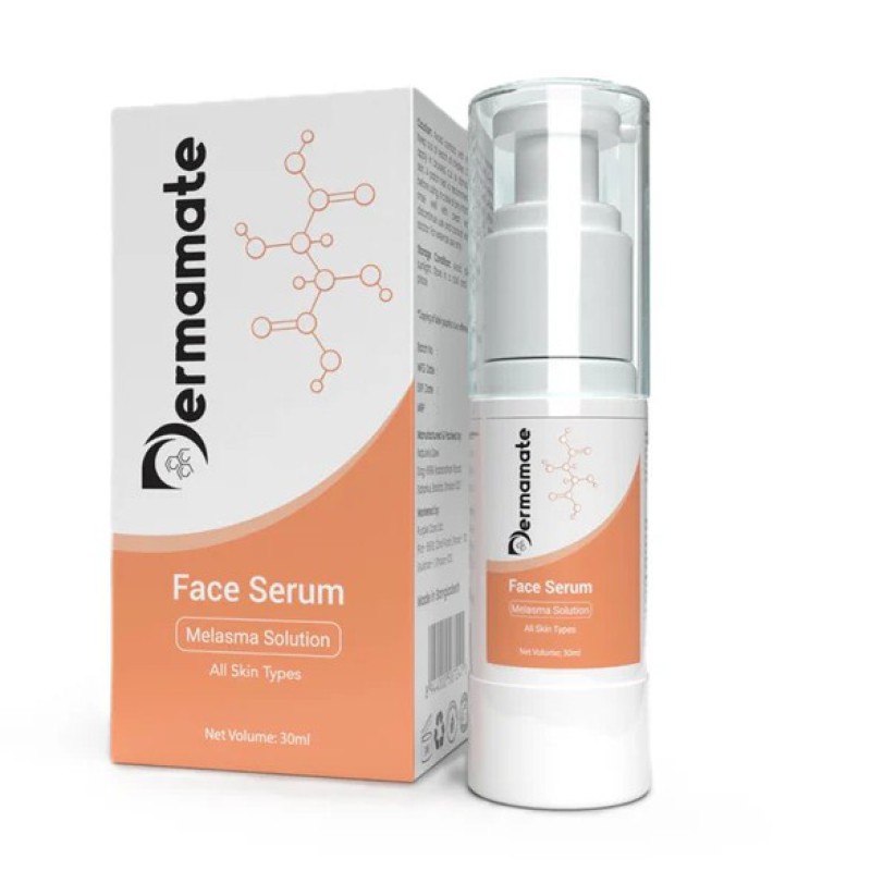 “Dermamate Melasma Face Serum” is a powerful and effective serum that works deeply in the skin to reduce melasma, dark spots, sun spots, age spots, hyperpigmentation, discoloration, and uneven tones on the face to give you an even new skin tone. It has Actinidia chinensis fruit Extract, Calendula officinalis extract centile asiatica extract, Alpha Arbutin & Malus domestica Extract which is for skin brightening and dark spot removal.